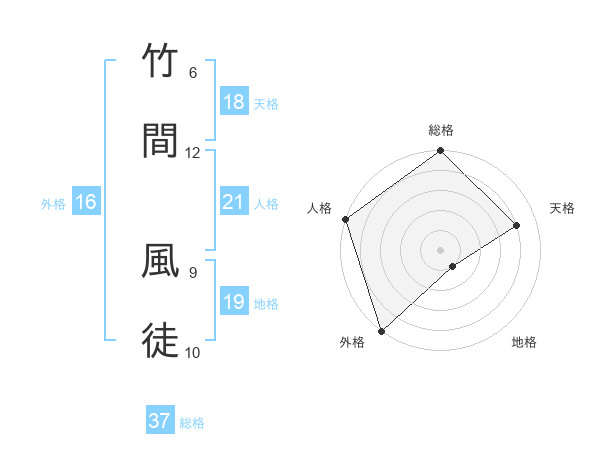 竹間 風徒さんを姓名の画数から五運を鑑定