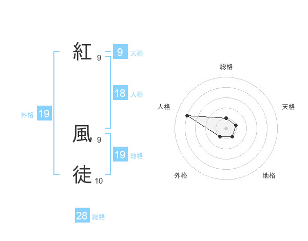 紅 風徒さんの総格は28画の1点!