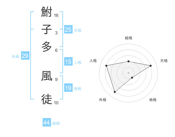 鮒子多 風徒さんを姓名の画数から五運を鑑定