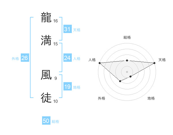 龍満 風徒さんを姓名の画数から五運を鑑定