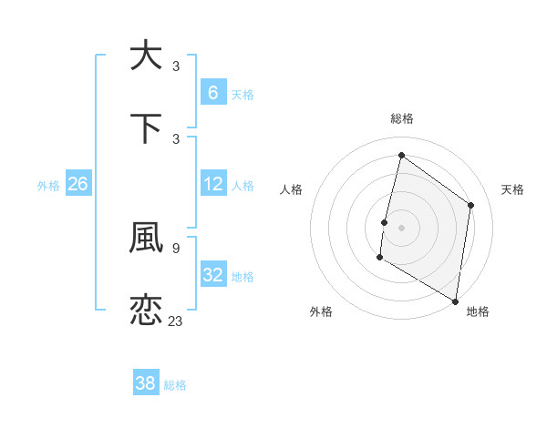大下 風恋さんの総格は38画の4点!