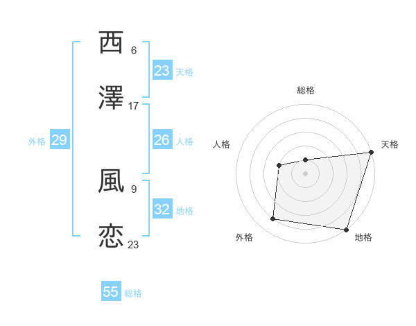 西澤 風恋さんを姓名の画数から五運を鑑定
