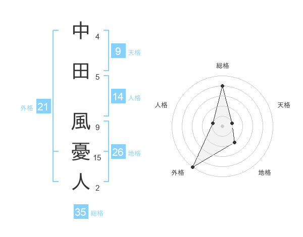 中田 風憂人さんを姓名の画数から五運を鑑定