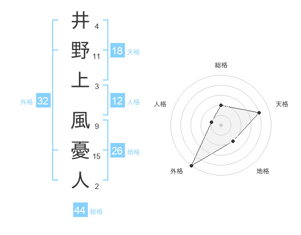 井野上 風憂人さんを姓名の画数から五運を鑑定