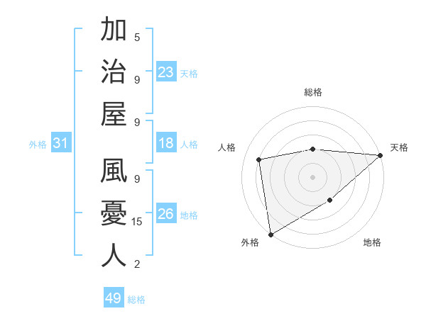 加治屋 風憂人さんを姓名の画数から五運を鑑定