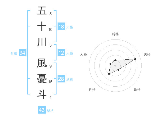 五十川 風憂斗さんを姓名の画数から五運を鑑定