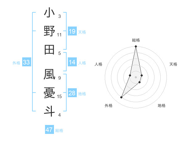 小野田 風憂斗さんを姓名の画数から五運を鑑定
