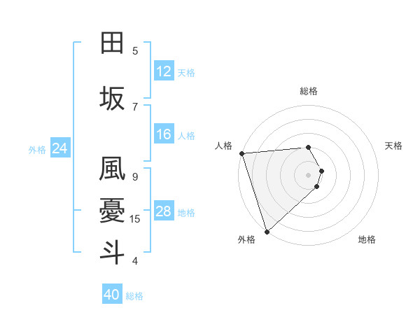 田坂 風憂斗さんの外格は24画の5点!