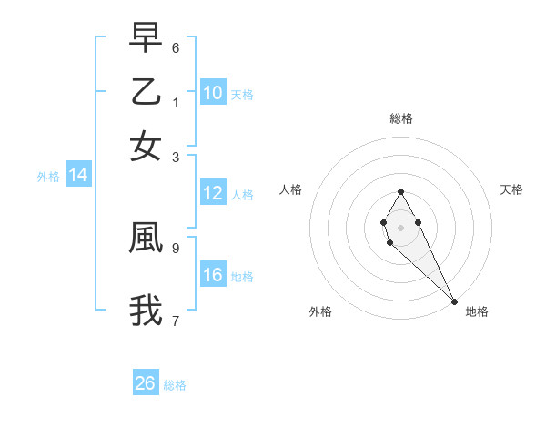 早乙女 風我さんを姓名の画数から五運を鑑定