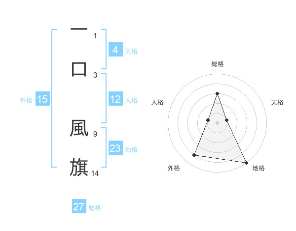 一口 風旗さんの総格は27画の3点!