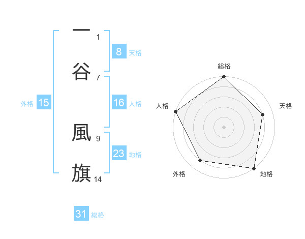 一谷 風旗さんを姓名の画数から五運を鑑定