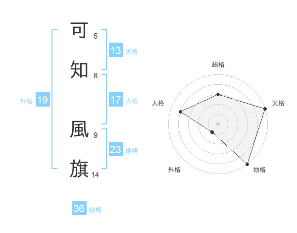 可知 風旗さんの地格は23画の5点!
