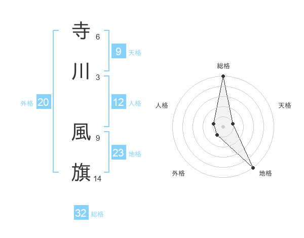 寺川 風旗さんの総格は32画の5点!
