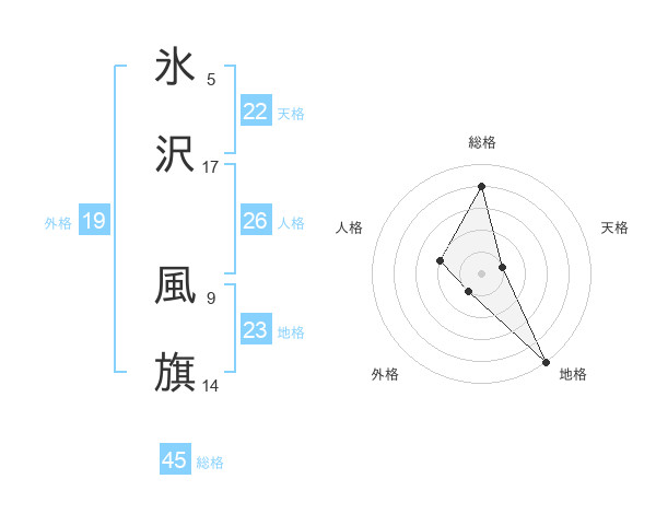 氷沢 風旗さんの総格は45画の4点!