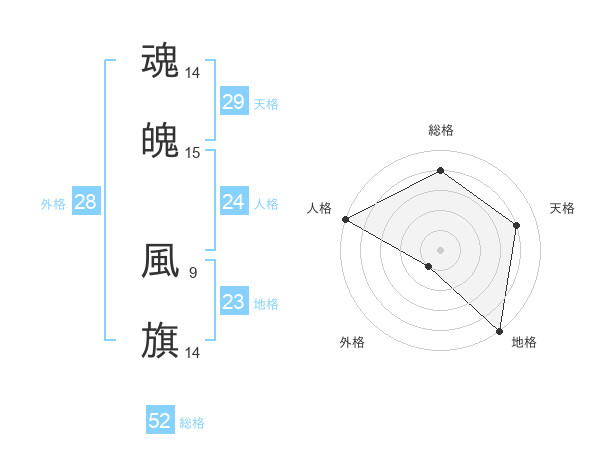 魂魄 風旗さんを姓名の画数から五運を鑑定