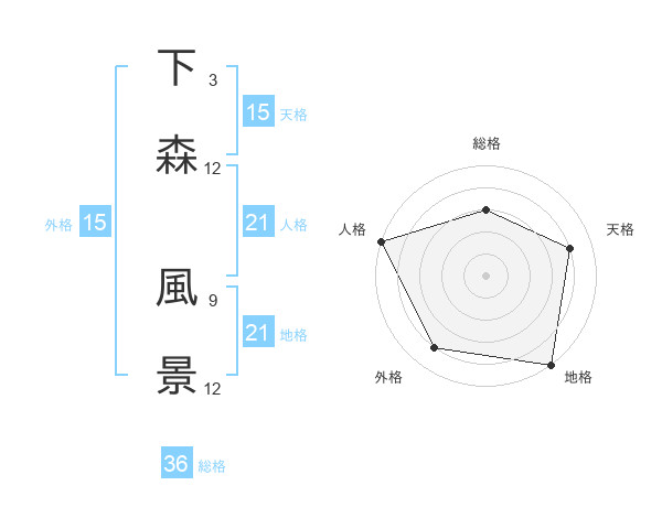 下森 風景さんの外格は15画の4点!