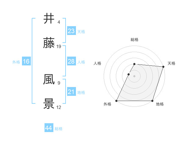 井藤 風景さんの総格は44画の2点!