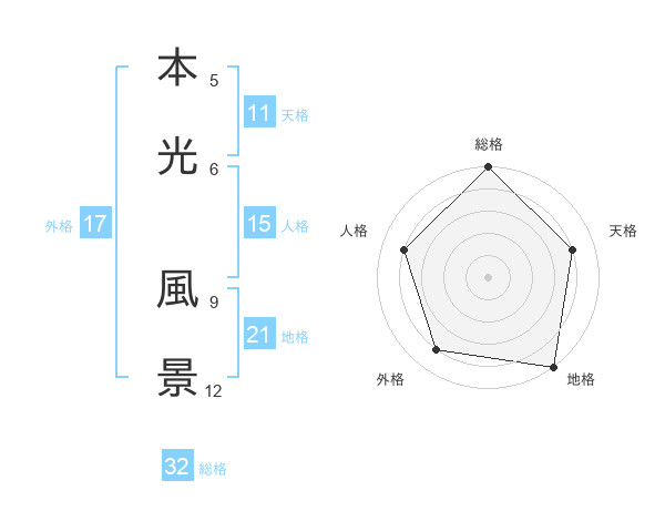 本光 風景さんの総格は32画の5点!