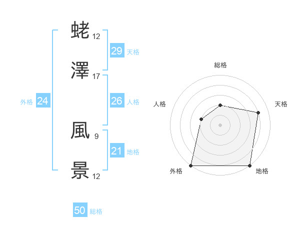 蛯澤 風景さんを姓名の画数から五運を鑑定