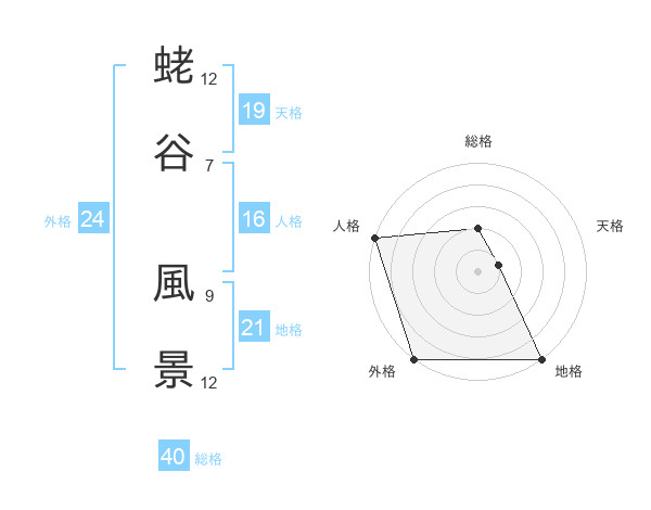 蛯谷 風景さんを姓名の画数から五運を鑑定