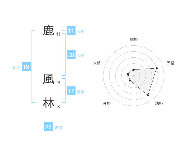 鹿 風林さんの総格は28画の1点!