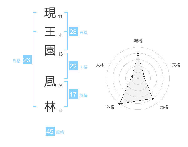 現王園 風林さんの総格は45画の4点