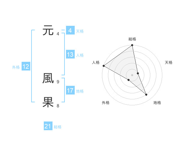 元 風果さんの総格は21画の5点!