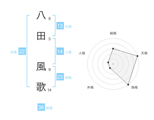 八田 風歌さんの天格は13画の5点!