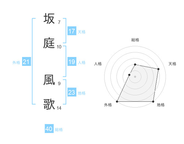 坂庭 風歌さんの外格は21画の5点!