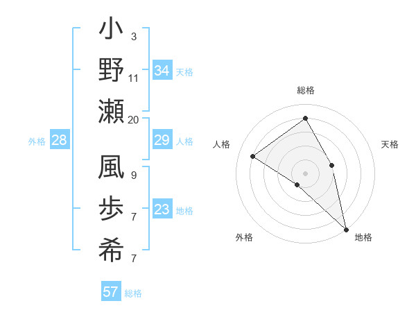 小野瀬 風歩希さんを姓名の画数から五運を鑑定