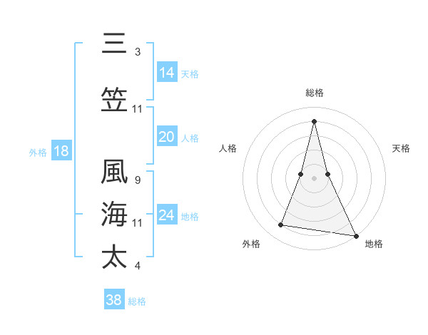 三笠 風海太さんの総格は38画の4点!