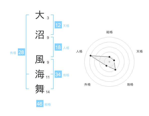 大沼 風海舞さんを姓名の画数から五運を鑑定