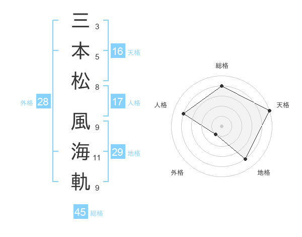 三本松 風海軌さんを姓名の画数から五運を鑑定