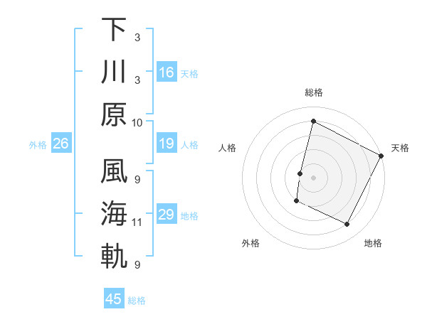 下川原 風海軌さんを姓名の画数から五運を鑑定