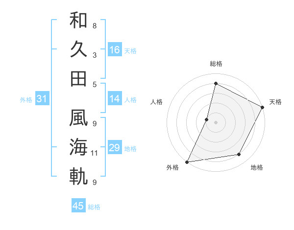 和久田 風海軌さんを姓名の画数から五運を鑑定