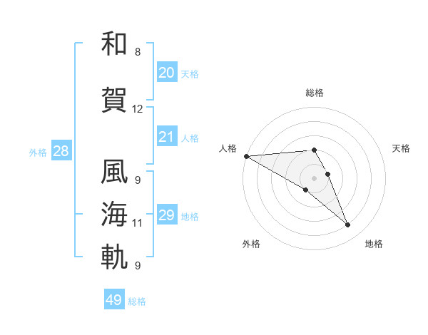 和賀 風海軌さんの人格は21画の5点!