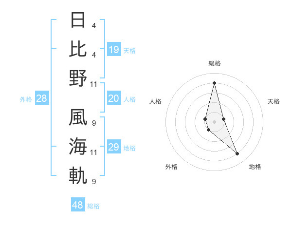 日比野 風海軌さんの総格は48画の4点!