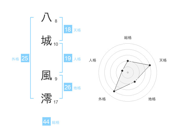 八城 風澪さんの天格は18画の4点!