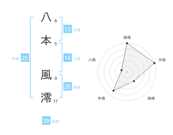 八本 風澪さんの総格は39画の5点!