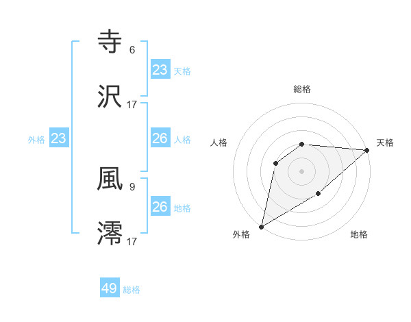 寺沢 風澪さんを姓名の画数から五運を鑑定