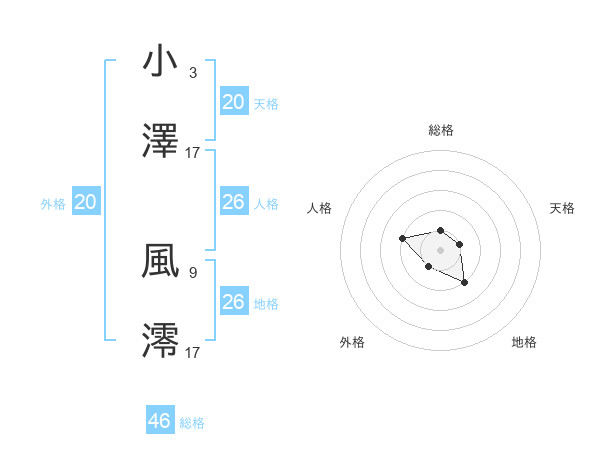 小澤 風澪さんを姓名の画数から五運を鑑定
