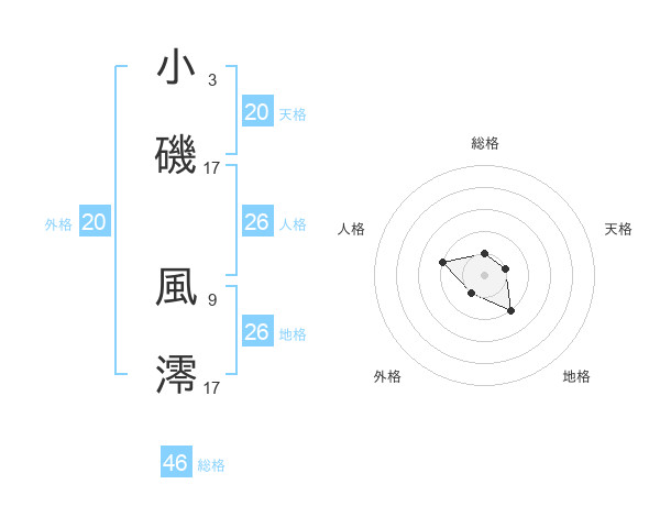 小磯 風澪さんを姓名の画数から五運を鑑定
