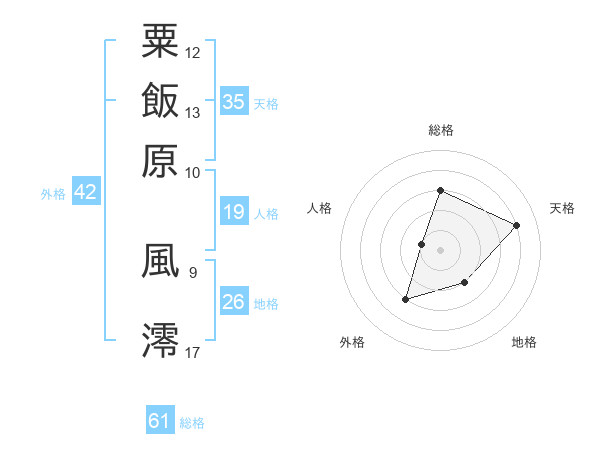 粟飯原 風澪さんの総格は61画の3点!