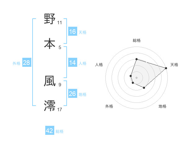 野本 風澪さんの総格は42画の3点!