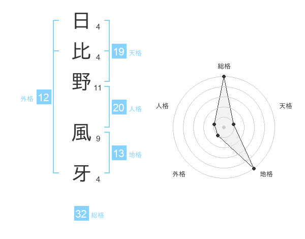 日比野 風牙さんを姓名の画数から五運を鑑定