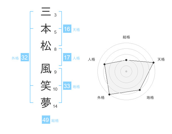 三本松 風笑夢さんを姓名の画数から五運を鑑定