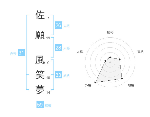 佐願 風笑夢さんを姓名の画数から五運を鑑定