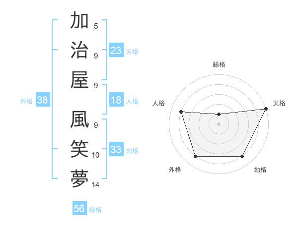 加治屋 風笑夢さんを姓名の画数から五運を鑑定