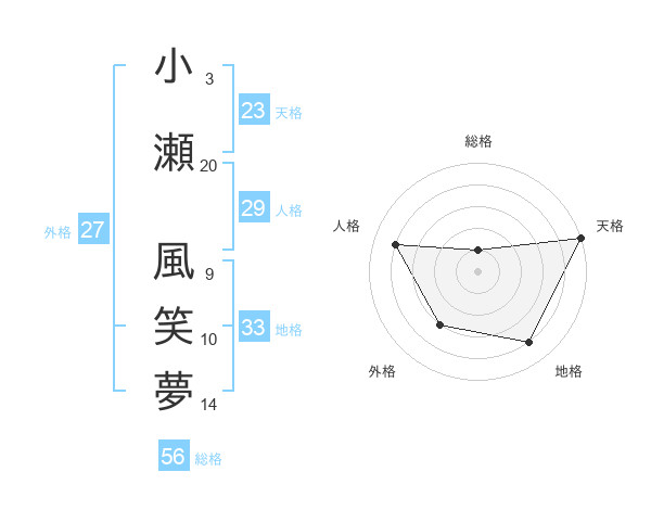 小瀬 風笑夢さんの天格は23画の5点!