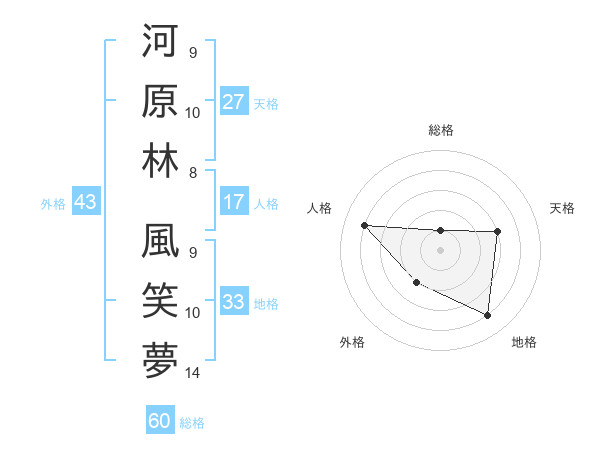 河原林 風笑夢さんを姓名の画数から五運を鑑定